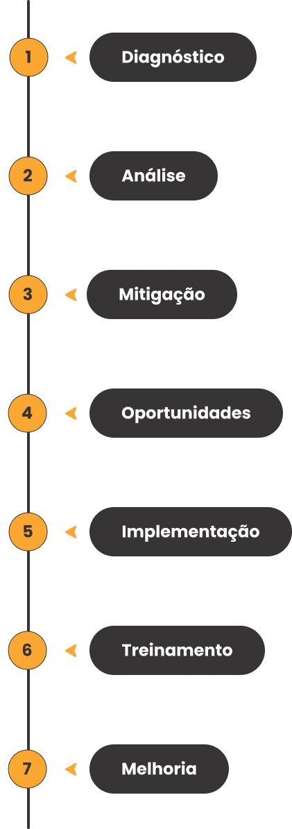 - Criação de planos de ação para prevenir, reduzir ou eliminar riscos identificados;